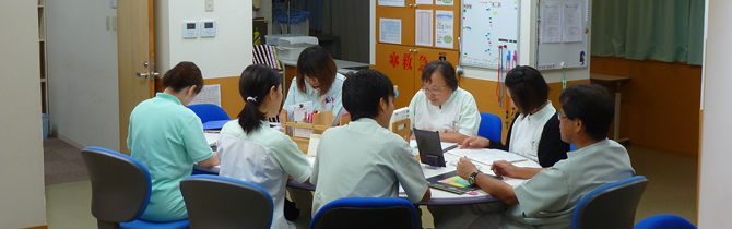 | 9:00 | 患者さんとのミーティング その日の予定やレクリエーション等のお知らせや、患者さんからのご要望を伺います |